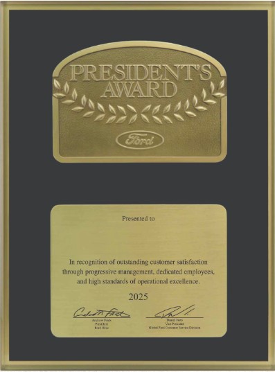 Back to HomeCongratulations to the entire team at McGovern Ford in Saugus for being awarded the 2025 President’s Award. This honor is given in recognition of outstanding customer service, dedicated employees and high standards of operational excellence.